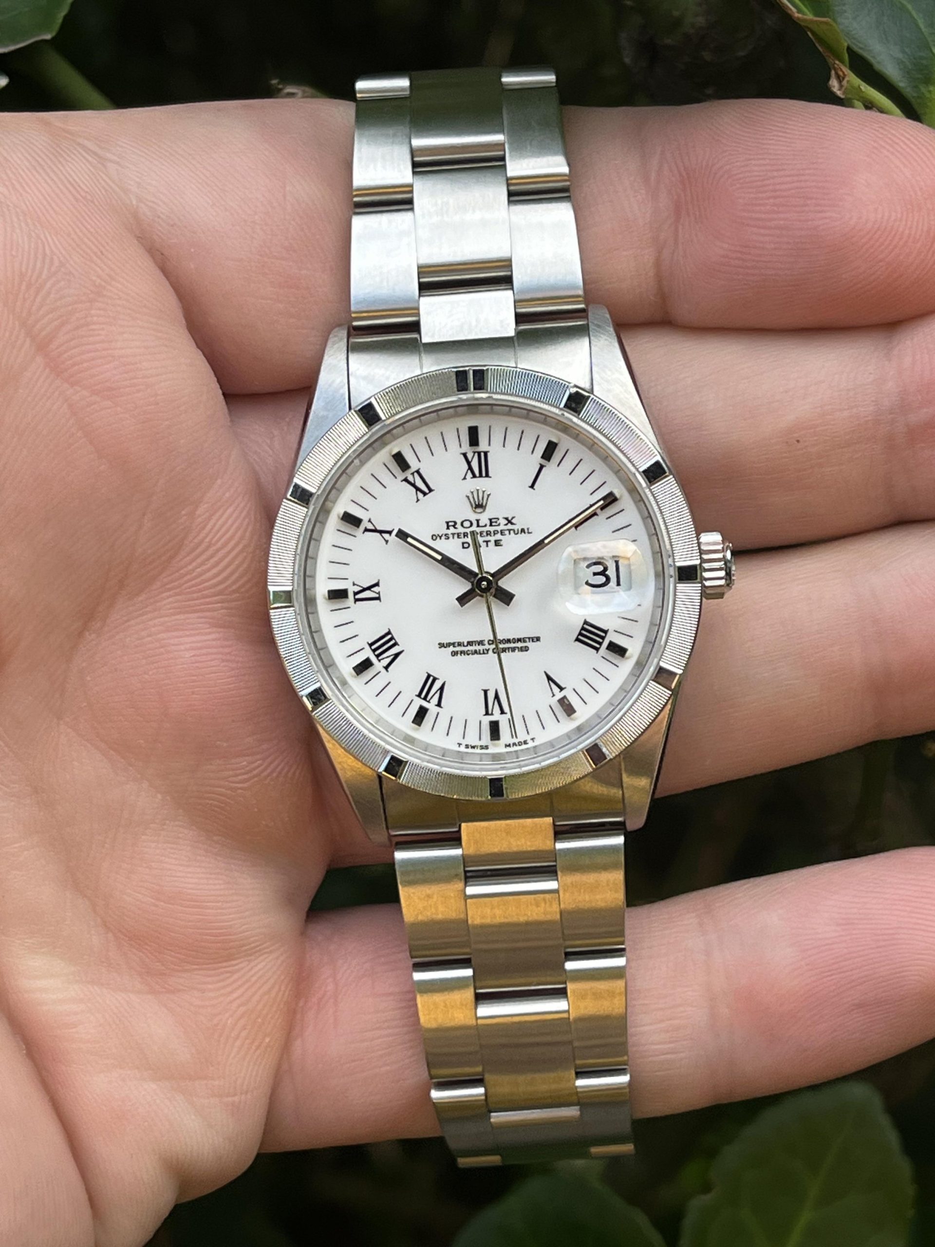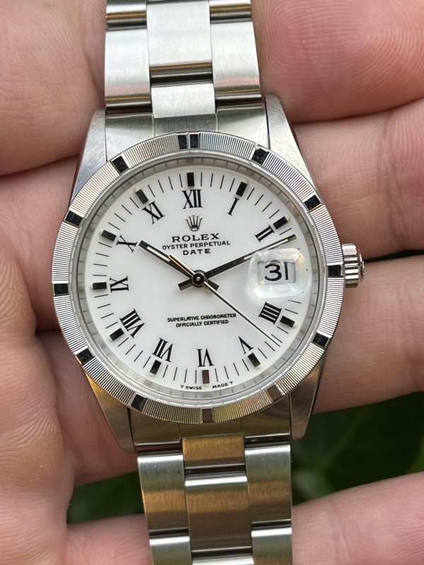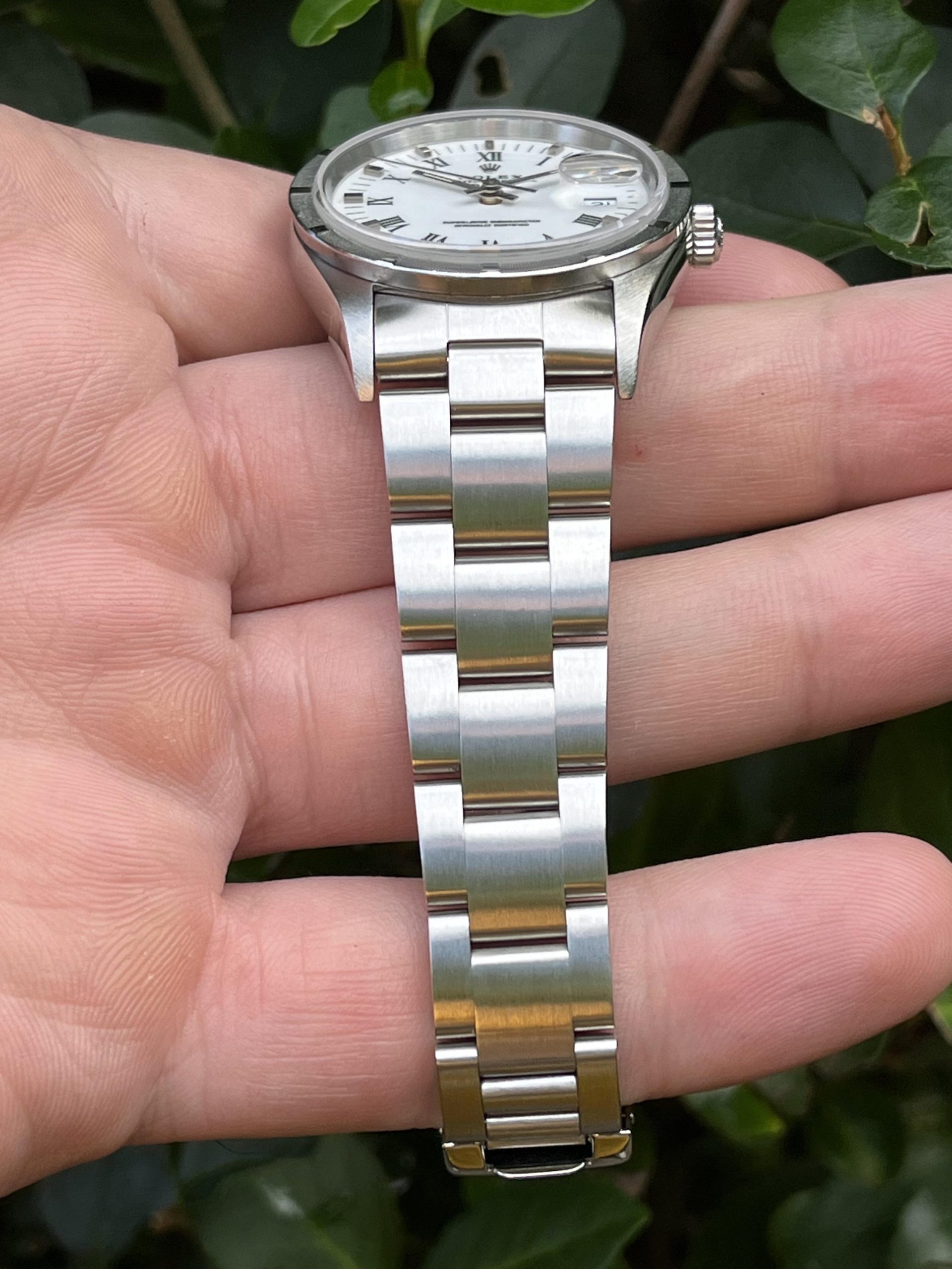Rolex OP Date 34mm Reference 15210 with a beautiful White Roman Numeral Dial.